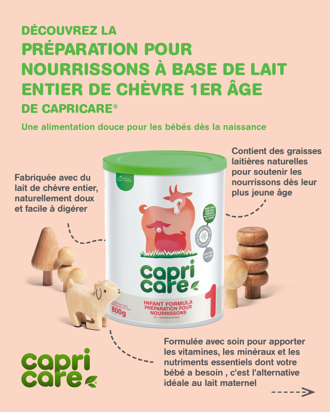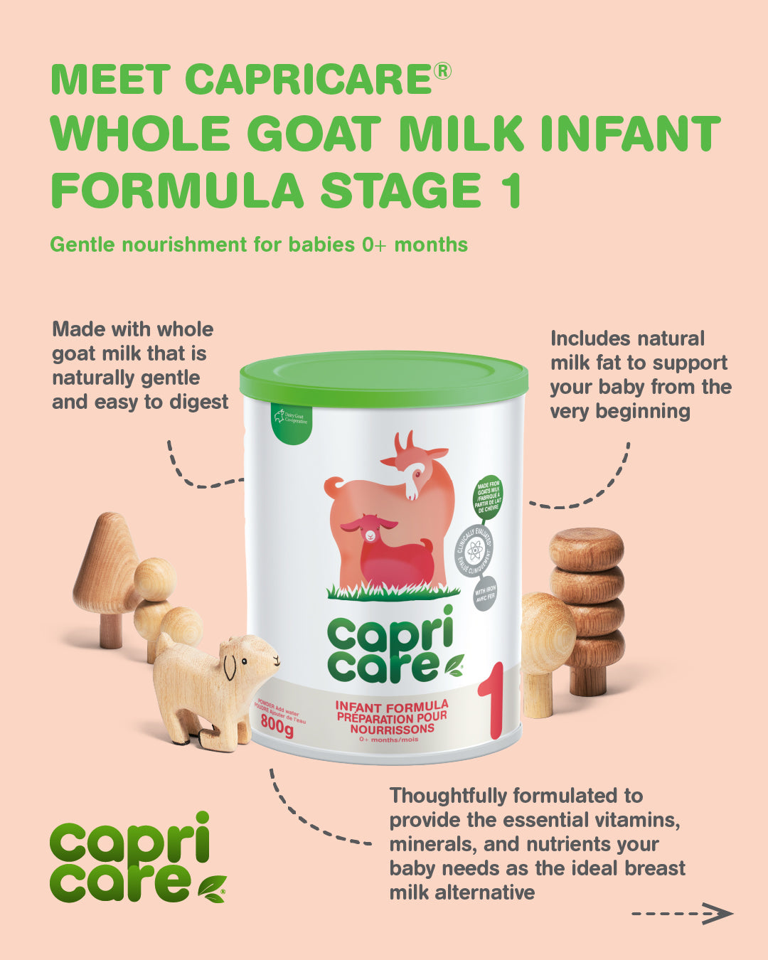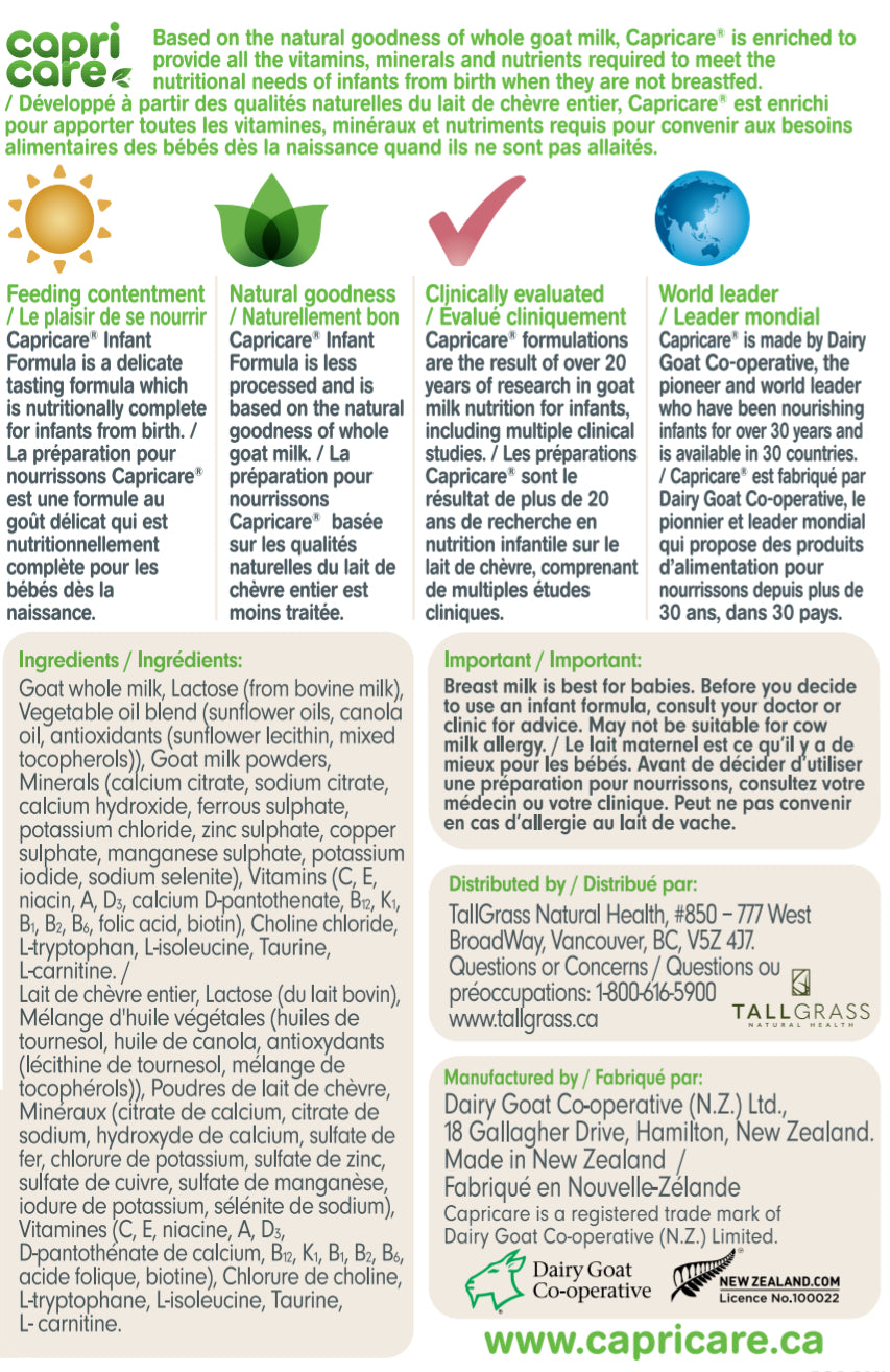 Based on the natural goodness of goats milk, Capricare® is formulated to provide vitamins, minerals and nutrients required to be a complete breast milk substitute. It is suitable for the particular nutritional use by infants from birth when they are not breastfed.