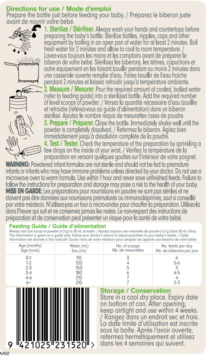 Important: Breast milk is best for babies. Before you decide to use an infant formula, consult your doctor or clinic for advice. May not be suitable for cow milk allergy.