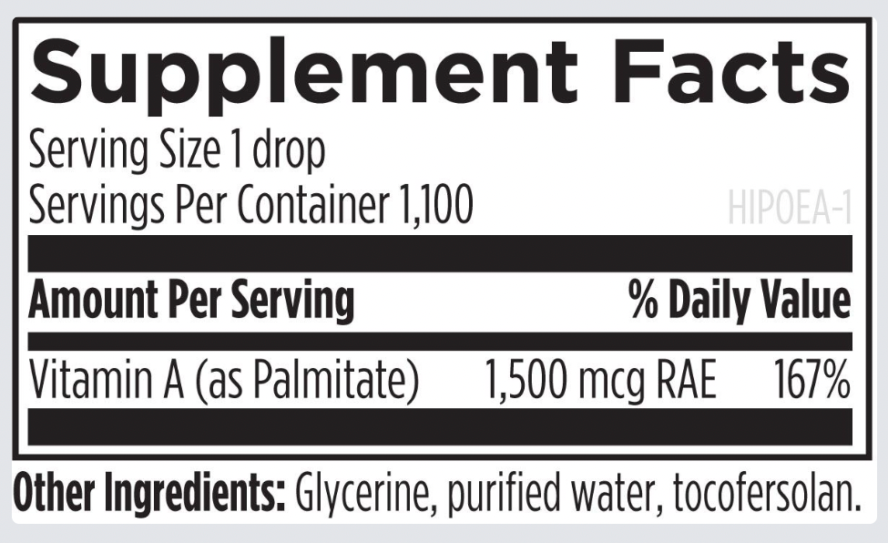 Recommended Use: Take 1 drop (5,000 IU) per day or as directed by your health-care practitioner.