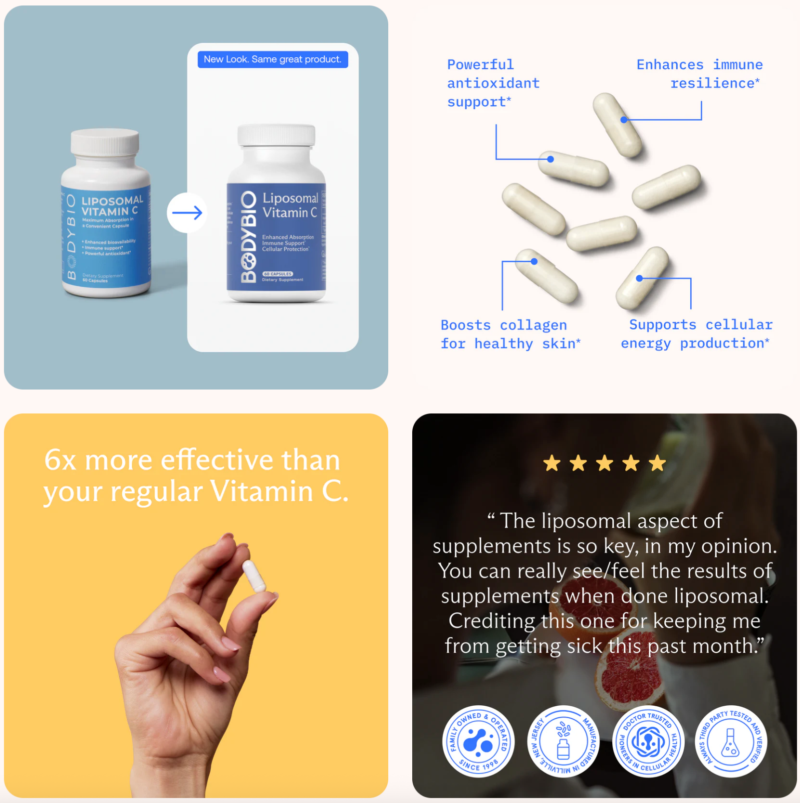 BodyBio Liposomal Vitamin C is the same high-quality Quali-C pure ascorbic acid you know, plus our new liposomal encapsulation delivery technology—ensuring that you get the most bioavailable and easily absorbable vitamin C that your cells crave.