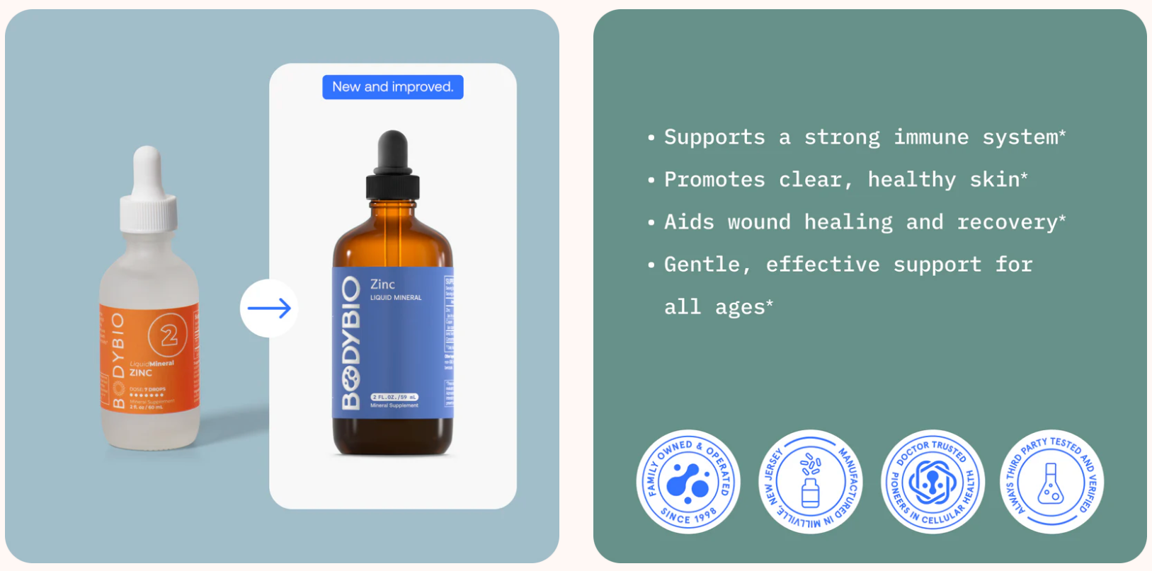 And because zinc and copper work together in the body, we balanced our liquid zinc formula with a little bit of copper for better cellular balance. You can also pair this with BodyBio Liquid Copper for further mineral optimization.