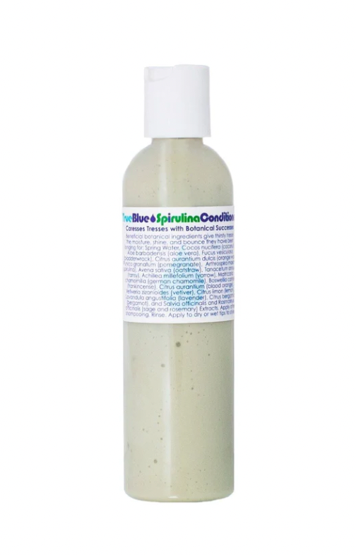 Directions: After washing your hair, comb conditioner through hair while it is still wet. Rinse. It may also be applied it to tips of dry hair. Apply to curly hair between washings. Perfect for use with our True Blue Spirulina Shampoo, it moisturizes and helps hair achieve a halo of glow.